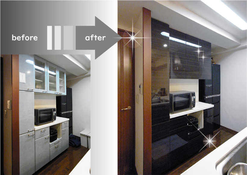 オーダー家具会社のプチリフォーム | キッチン扉,食器棚扉,収納扉,洗面台扉の交換・新設